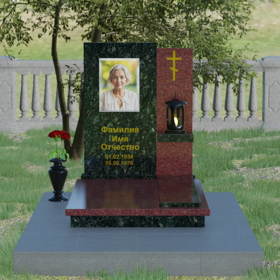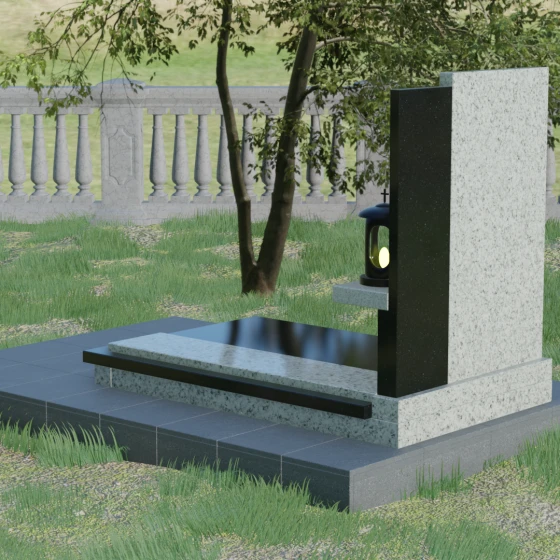 Кому подойдет: Данная модель является универсальной благодаря своему лаконичному и одновременно глубокому дизайну. Она станет достойным выбором как для мужчины, так и для женщины. Строгость линий и золотые акценты подчеркнут статус и мужество, а плавные изгибы верхней грани привнесут нотки женственности и нежности. Этот мемориал выбирают те, кто хочет выразить глубокое уважение и создать на кладбище место, преисполненное достоинства и тишины, где каждый элемент — от лампады до фактуры камня — говорит о вечной любви.