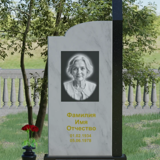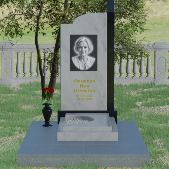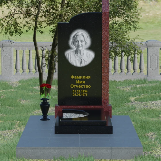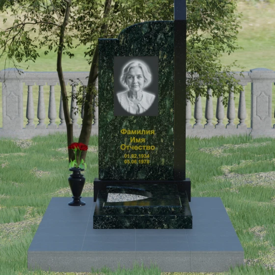 Широкое полотно основной стелы открывает безграничные возможности для художественного оформления. Форма идеально подходит для размещения крупного портрета в технике гравировки с мягкой растушевкой («ореолом»), что создает эффект живого взгляда. Золоченая кириллица имен и дат особенно выразительно смотрится на темном фоне, придавая мемориалу статусность и торжественность. Для того чтобы отразить индивидуальность и характер ушедшего человека, данная модель доступна в 8 цветовых решениях. Вы можете выбрать классический черный гранит Габбро-диабаз, благородный серо-белый Мансуровский гранит, насыщенный красный Лезниковский или глубокий коричневый Дымовский. Также доступны экзотические варианты: лесной Балтик грин, искрящийся Блю Перл, контрастный амфиболит или сияющий белизной мрамор Тассо. Комбинирование двух видов камня позволяет создать уникальный контраст фактур и оттенков, подчеркивая архитектурную сложность изделия.