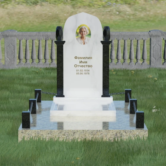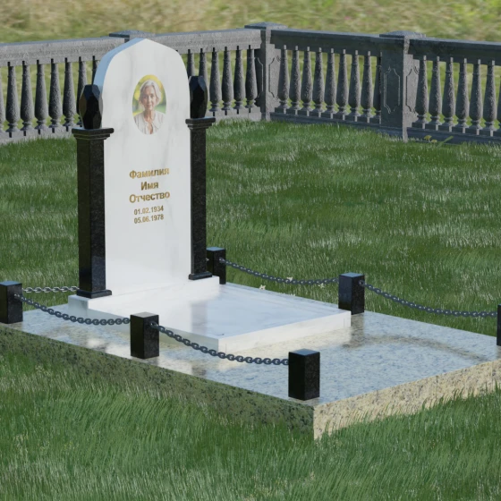 Форма купола или арки в мемориальной архитектуре традиционно символизирует небесный свод и переход души в лучший мир. Это образ защиты и вечного крова, который мы дарим близкому человеку в его последнем пристанище. Колонны, обрамляющие памятник, олицетворяют духовную опору и стойкость характера, а также преемственность поколений. Каждая деталь здесь — от четких линий основания до изящных верхушек — говорит о нерушимой связи между прошлым и настоящим, о покое, который наконец обрела душа, и о той защите, которую память живых обеспечивает ушедшим.