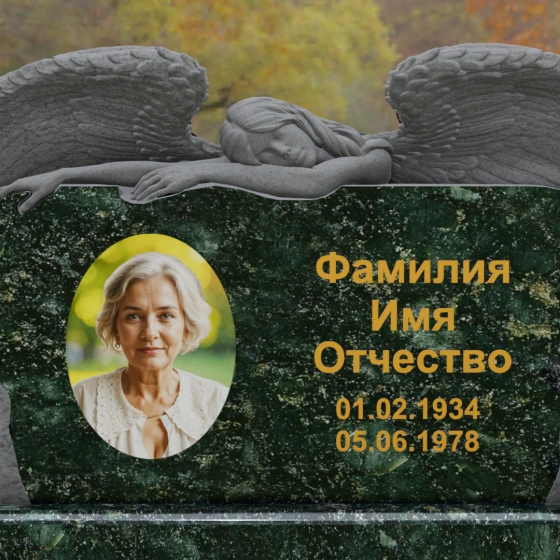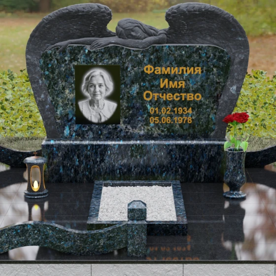 Оформление: Благодаря большой площади горизонтальной плиты, эта модель идеально подходит для размещения крупного художественного портрета и каллиграфических надписей. Мы рекомендуем использовать глубокую гравировку с последующим покрытием сусальным золотом или «под золото», что в сочетании с темными видами гранита подчеркнет статусность и величие монумента.