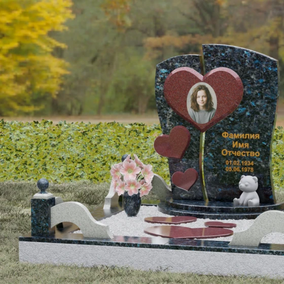 Как мастер, работающий с камнем многие годы, я могу с уверенностью сказать, что выбор натурального гранита для этой сложной модели — единственно верное решение. Этот материал обладает феноменальной плотностью и прочностью, он не боится ни суровых морозов, ни палящего солнца, ни влаги. Зеркальная полировка, раскрывающая всю глубину природного рисунка, сохранит свой первозданный вид на десятилетия, не требуя сложного ухода. Мы понимаем важность индивидуального подхода, поэтому данная модель доступна в 8 вариантах исполнения. Вы можете выбрать материал, наиболее полно отражающий характер усопшего: строгий черный Габбро-диабаз, благородный зеленый Балтик грин, искрящийся синий Блю Перл, глубокий коричневый Дымовский, яркий красный Лезниковский, светлый Мансуровский, текстурный амфиболит или нежный белый мрамор Тассо. Особенно выразительно смотрятся комбинированные варианты, где сердце выполнено из камня другого цвета.