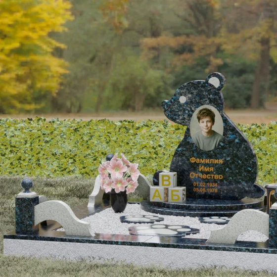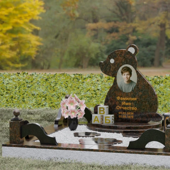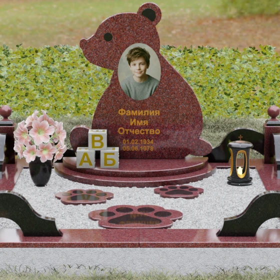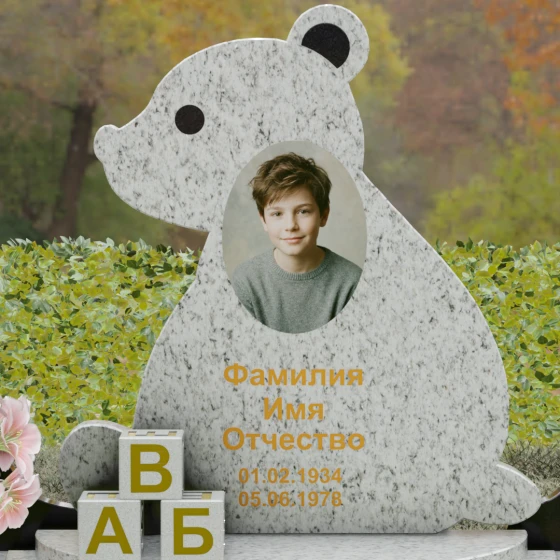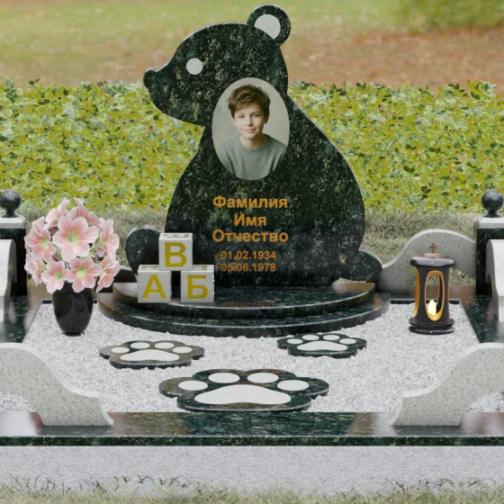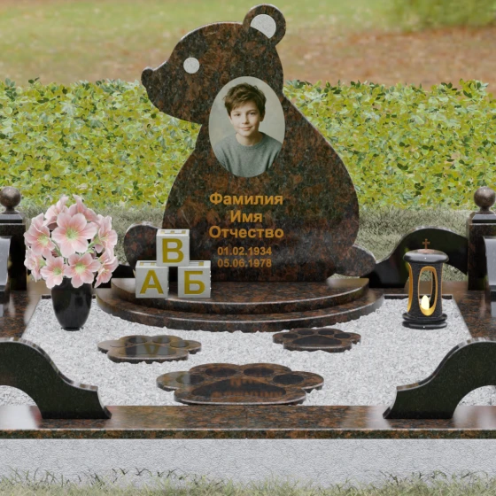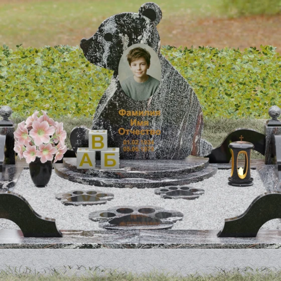 Кому подойдет: Данная модель разработана специально для оформления захоронения ребенка. Она идеально подходит родителям, желающим выразить свою безграничную любовь и горечь утраты через светлый и понятный образ. Сочетание монументальности натурального гранита и трогательной формы «мишки» позволяет создать атмосферу светлой памяти, подчеркивая, что душа близкого человека навсегда останется окруженной заботой и теплом.