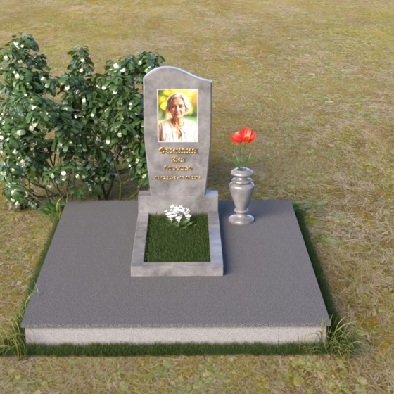 Форма стелы, тяготеющая к классической прямоугольной, предоставляет широкие возможности для персонализации. Портрет усопшего, расположенный в верхней части, будет выгодно подчеркнут лаконичной формой камня. Золотистое начертание имени и дат жизни, выполненное с особым вниманием к деталям, отчетливо выделяется на фоне полированного гранита, создавая четкий и легко читаемый текст. Дополнительно можно разместить эпитафию или памятные слова, которые отразят личность и жизненный путь ушедшего человека. Маленькая гранитная ваза, выполненная в едином стиле с мемориальной композицией, станет достойным обрамлением для живых цветов, привносящих нотку жизни и надежды.
